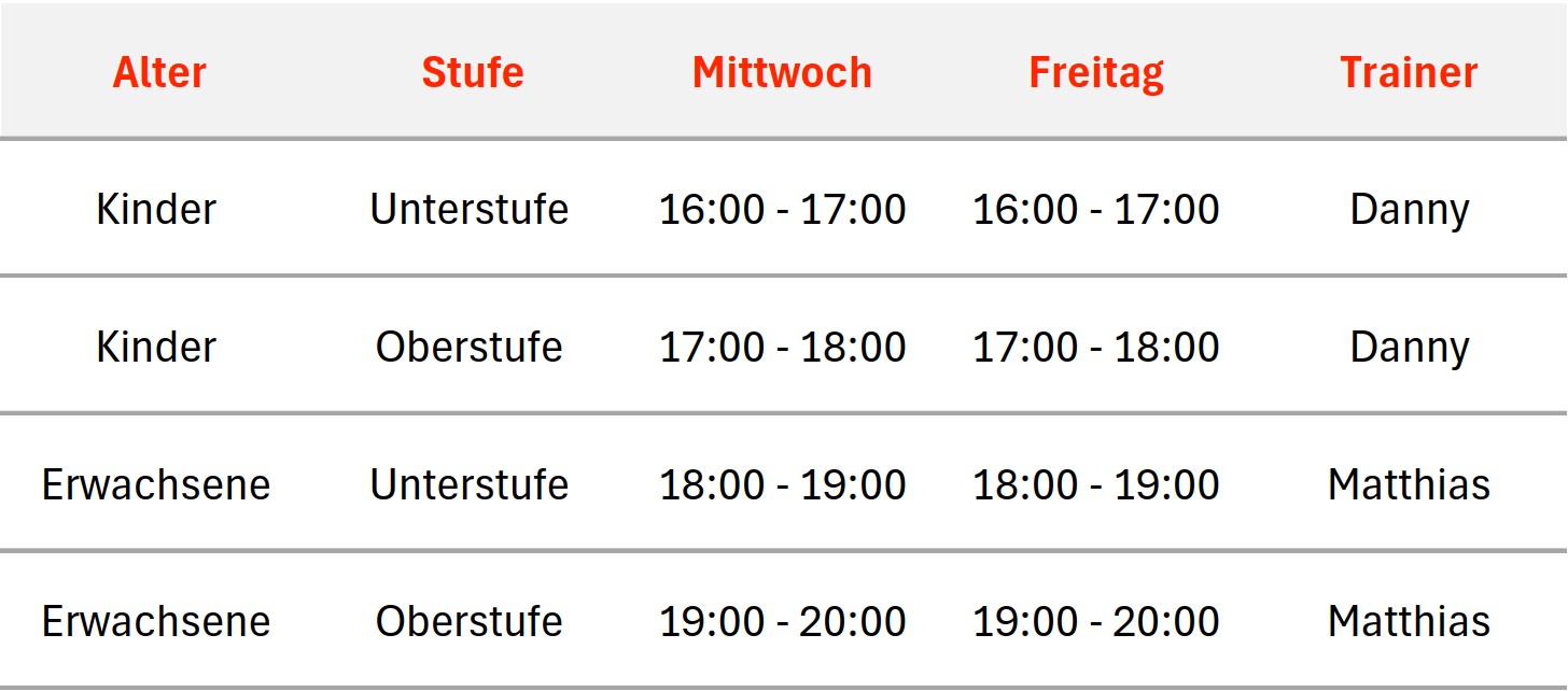 Nagato-Dojo Karate-Do e.V.: Trainingszeiten